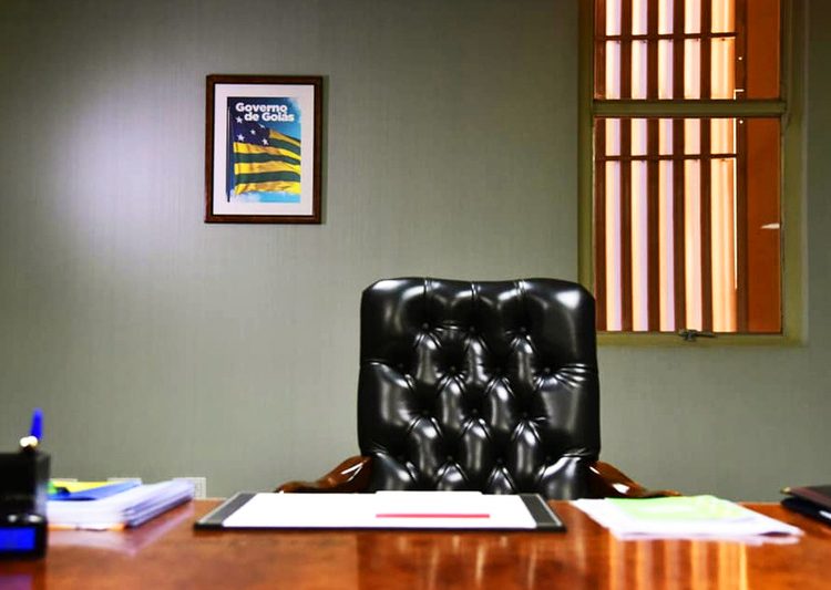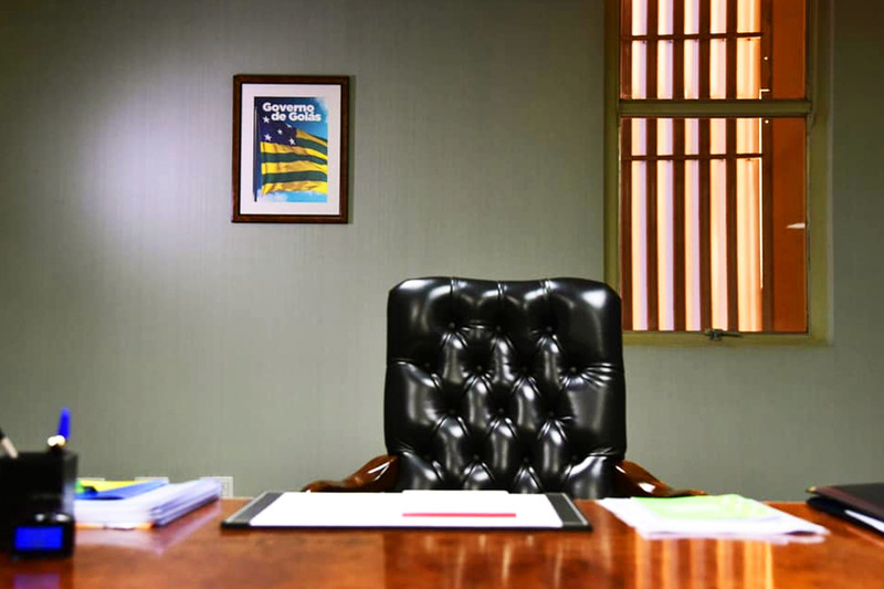 O governador Ronaldo Caiado (DEM) substituiu as costumeiras fotos do chefe do Executivo em repartições públicas por uma imagem da bandeira de Goiás.