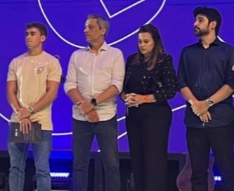 Ao lado do seu correligionário Nikolas Ferreira (PL-MG), o deputado federal Gustavo Gayer (PL) esteve na sede da Igreja Videira.