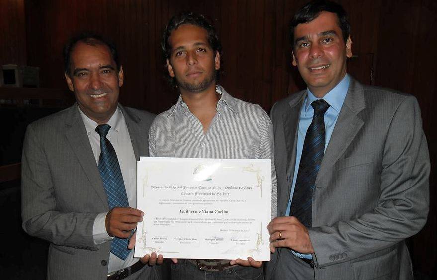 O editor-chefe e fundador do Jornal Folha Z, Guilherme Coelho, recebeu a Comenda Especial Joaquim Câmara Filho – Goiânia 80 anos em solenidade na Câmara Municipal no mês passado. O jornalista foi homenageado ao lado de outros 38 comunicadores