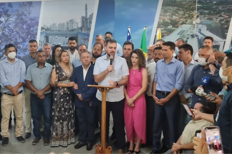 “Abro mão para cumprir um sonnho”, afirmou, ao lado da 1ª dama, vice-prefeito, secretários e apoiadores.