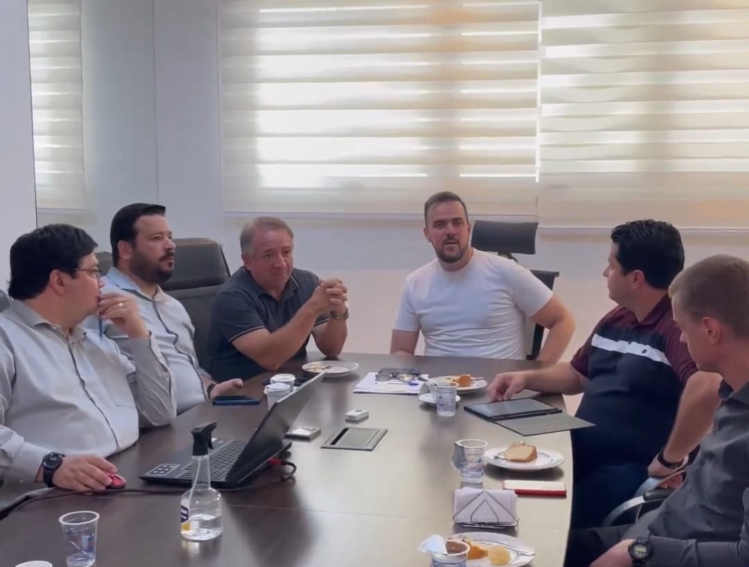 Gustavo Mendanha e Vilmar Mariano em reunião com comitiva de Joinvile na Prefeitura de Aparecida de Goiânia | Foto: Reprodução