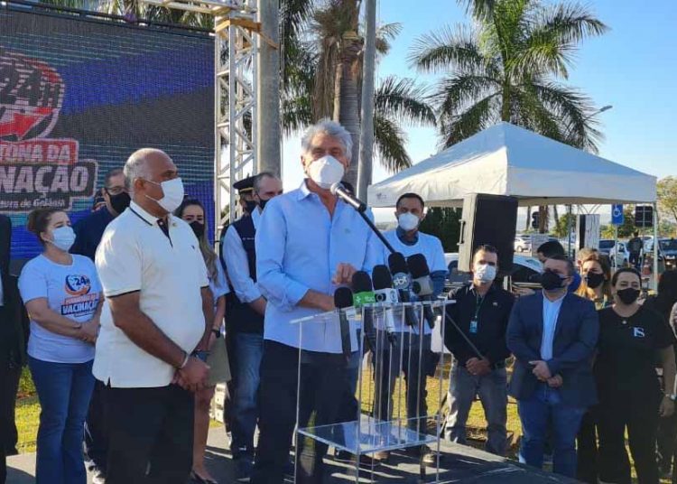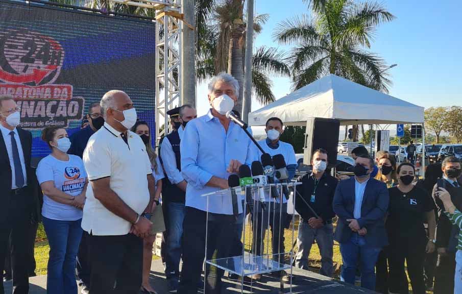 Na abertura da Maratona da Vacinação contra a Covid-19, que ocorre durante todo o dia deste sábado (10) e será finalizado apenas às 8h deste domingo (11), o governador Ronaldo Caiado pediu para que as pessoas retornassem para a 2ª dose.