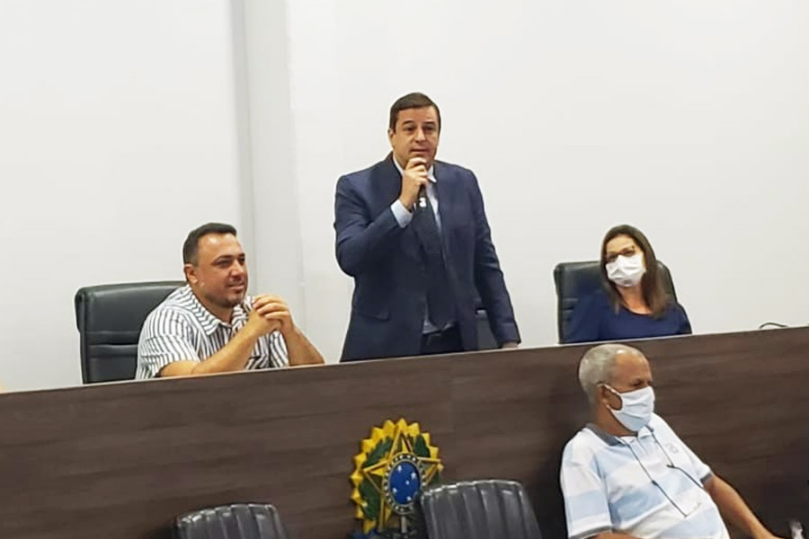 Para a solenidade de anúncio, no plenário da Câmara, Estavam presentes servidores e vereadores da base.