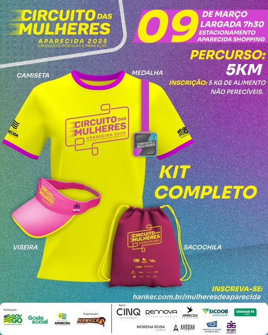 No dia 9 de março, Aparecida de Goiânia recebe o Circuito das Mulheres, uma corrida de 5 km dedicada ao público feminino.