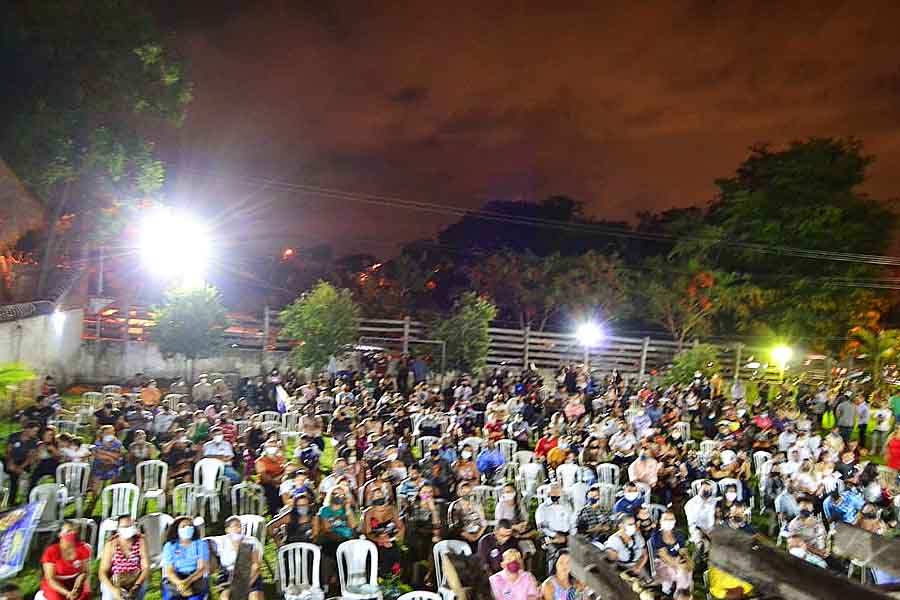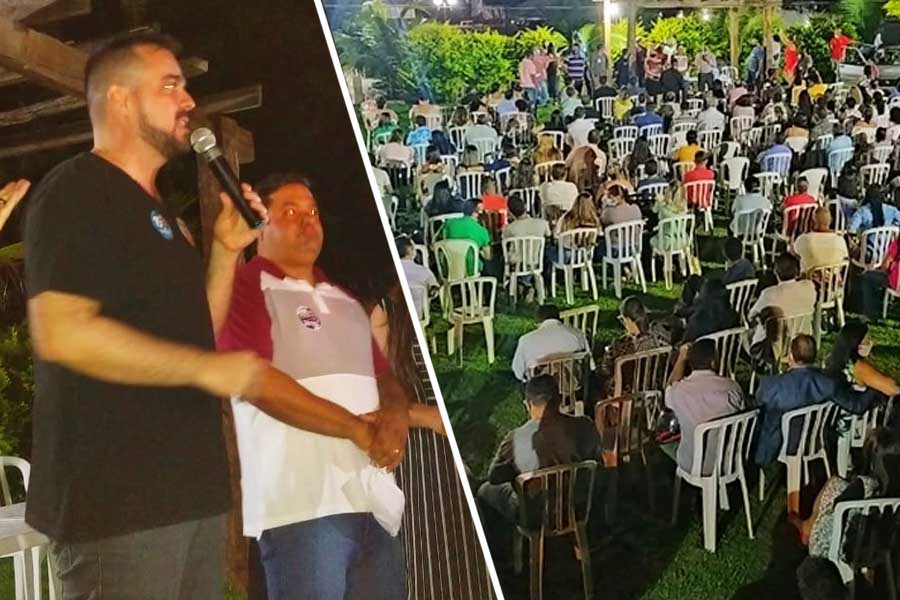 O vereador e candidato à reeleição Leandro da Pamonharia (PTC) fez uma reunião com mais de 800 pessoas em uma chácara no Jardim Cascata, em Aparecida, na noite dessa 4ª feira (11).