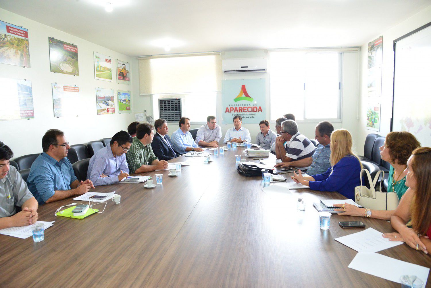 Foi realizada na manhã desta sexta-feira, 14, a primeira reunião do prefeito Maguito Vilela (PMDB) com o primeiro escalão da administração municipal após as eleições municipais. O encontro contou com as presenças do prefeito eleito Gustavo Mendanha (PMDB) e do vice-prefeito eleito Veter Martins (SD).