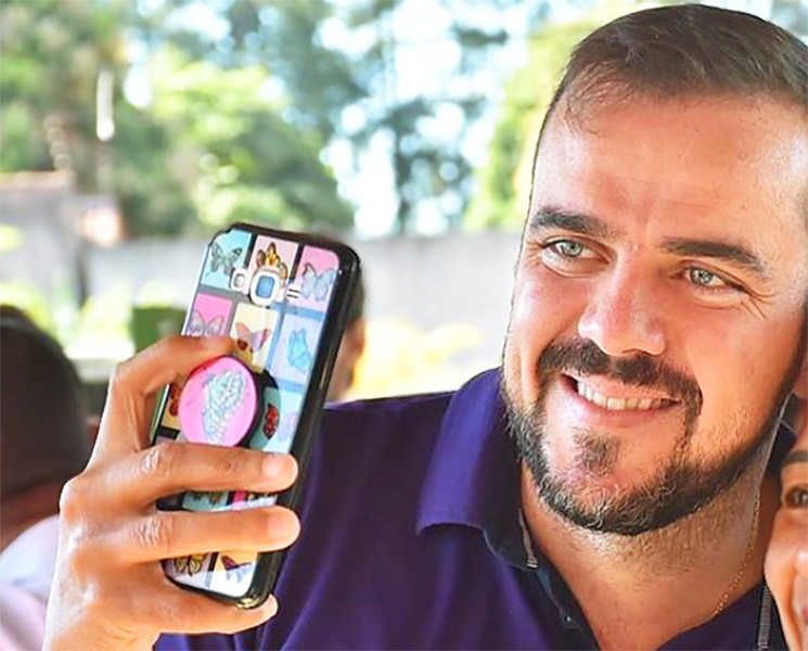 Ele postou em sua conta no Instagram 2 fotos usando o filtro. Ambas ao lado da sua esposa, a 1ª Dama Mayara Mendanha.