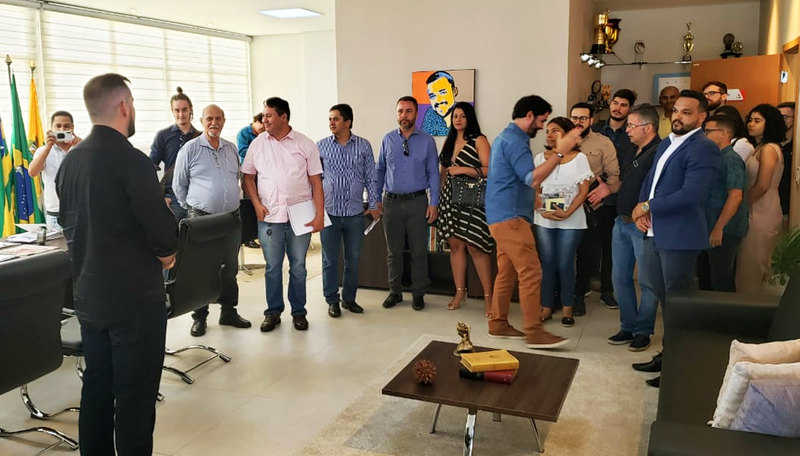 Por fim, o prefeito levou os jornalistas para conhecer seu gabinete e o terraço do prédio da Cidade Administrativa, com uma vista privilegiada de Aparecida de Goiânia.