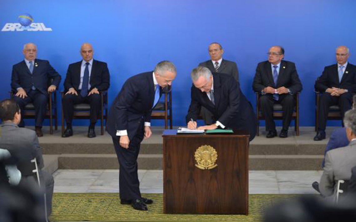 O presidente do Brasil, Michel Temer (PMDB), sanciona na manhã desta quinta-feira, 27, em Brasília (DF), o projeto Crescer Sem Medo. O projeto, aprovado no plenário da Câmara dos Deputados no último dia 4, aumenta o limite máximo de receita bruta para pequenas empresas participarem do regime especial de tributação do Simples Nacional, passando de R$ 3,6 milhões para R$ 4,8 milhões de receita bruta anual.