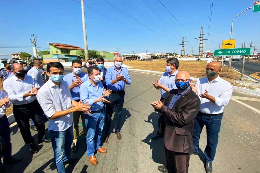 Acompanhado pelo ministro da Infraestrutura Tarcísio Freitas, Caiado entregou obras de revitalização do Anel Viário.