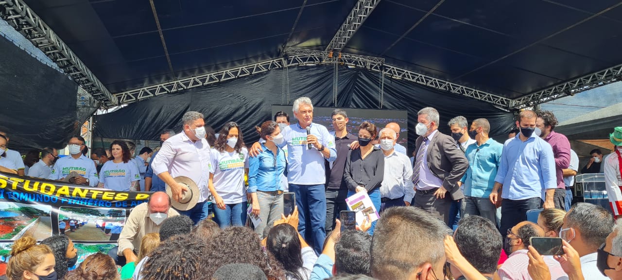 “Nunca abandonei meu Estado”, Caiado critica Marconi em mutirão