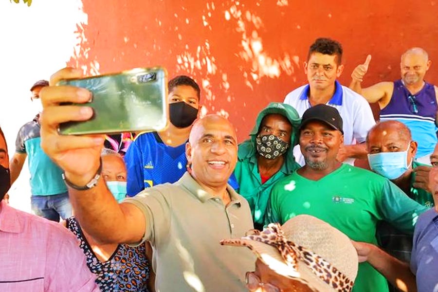 Rogério Cruz tira selfie com moradores e trabalhadores na Região Leste de Goiânia | Foto: Reprodução