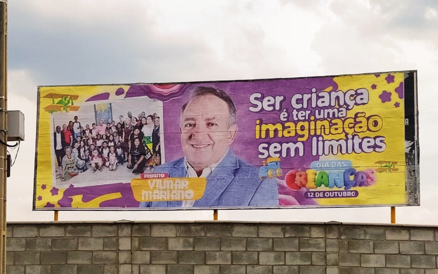 Em preparação para o Dia das Crianças, no próximo 12 de outubro, prefeito Vilmar Mariano teria autorizado a publicação de 20 outdoors com uma mensagem sua alusiva à data.