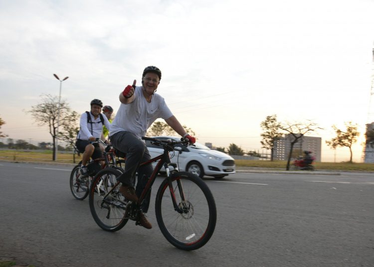 Paulo Garcia, que mora no Setor Bueno, pedalou até o Parque Lozandes, sede da prefeitura e mostrou muita disposição durante o trajeto.