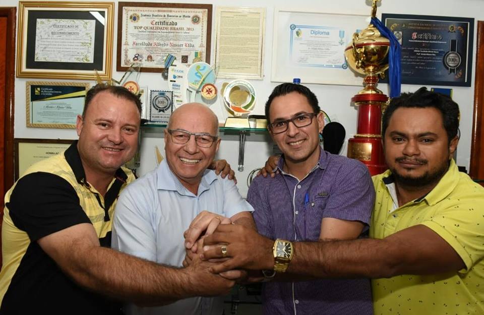 Pré-campanha do Professor Alcides angaria apoio massivo da Câmara de Aparecida. Na foto, Fábio Ideal (PSC), Professor Alcides Ribeiro (PP), Lelis Pereira (DEM) e Erivelton Contador (PSDC) | Foto: Reprodução / Facebook