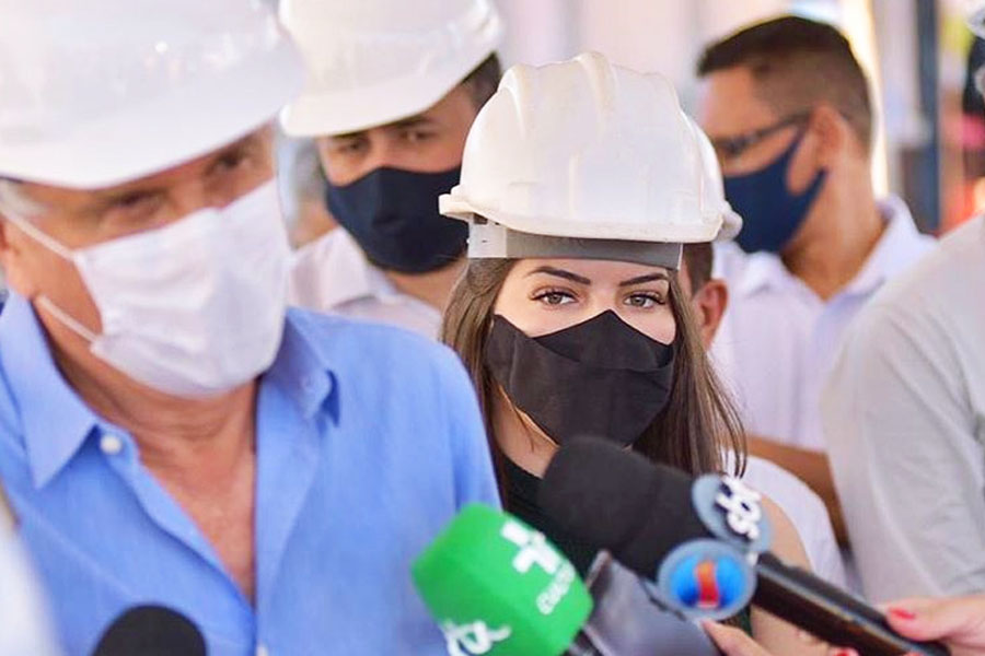 Carol Araújo (DEM) chegou junto com o governador Ronaldo Caiado (DEM) para a vistoria dos linhões da Saneago em Aparecida de Goiânia na 3ª feira (11).