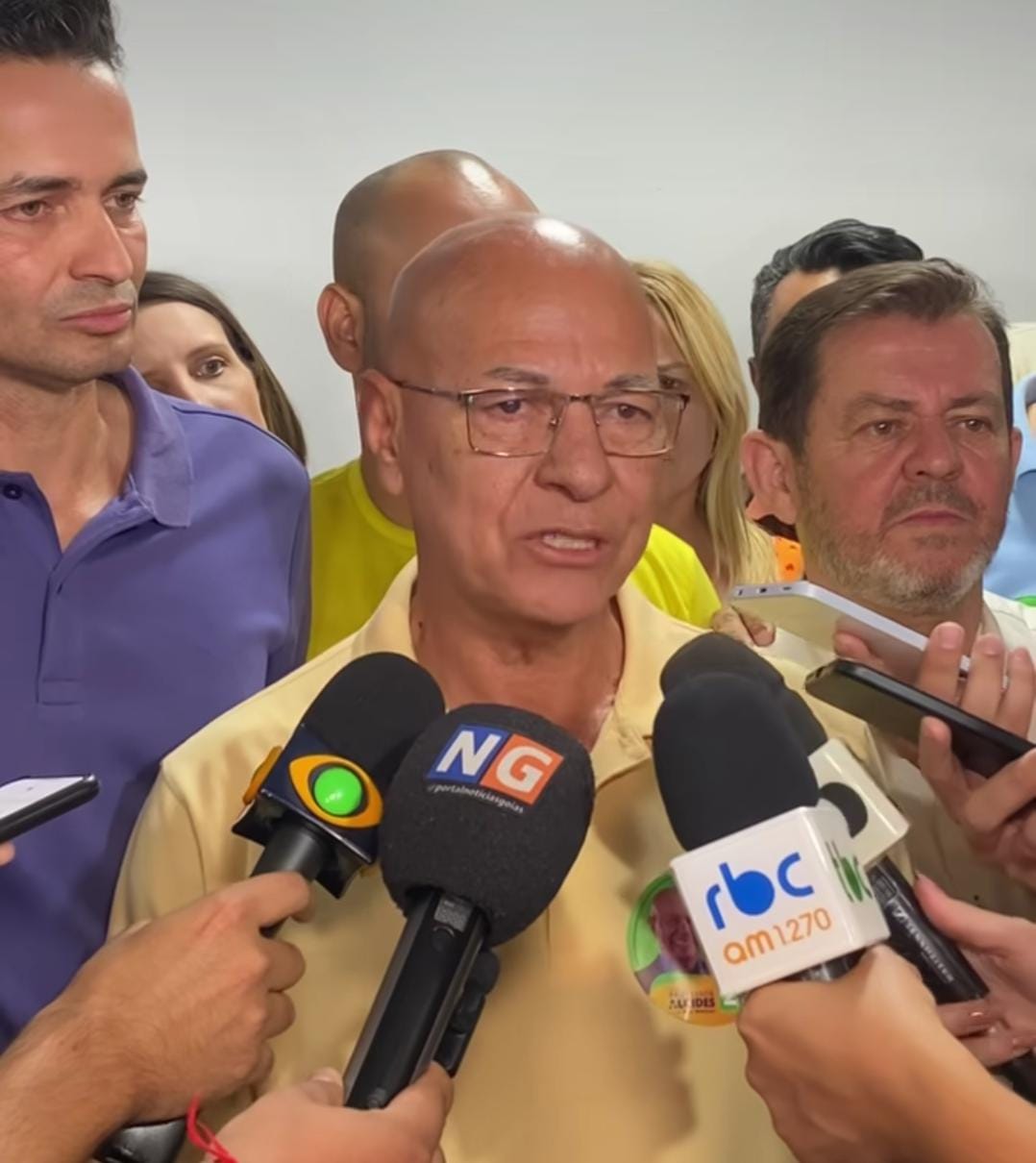 Após o resultado do 1º turno em Aparecida de Goiânia, o candidato Professor Alcides (PL) concedeu uma entrevista coletiva em seu escritório político, onde expressou gratidão pelos votos recebidos.