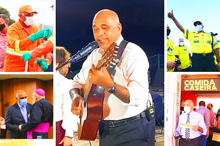 Já foi registrado vestido de gari, indo a feiras e até mesmo cantando no parque.
