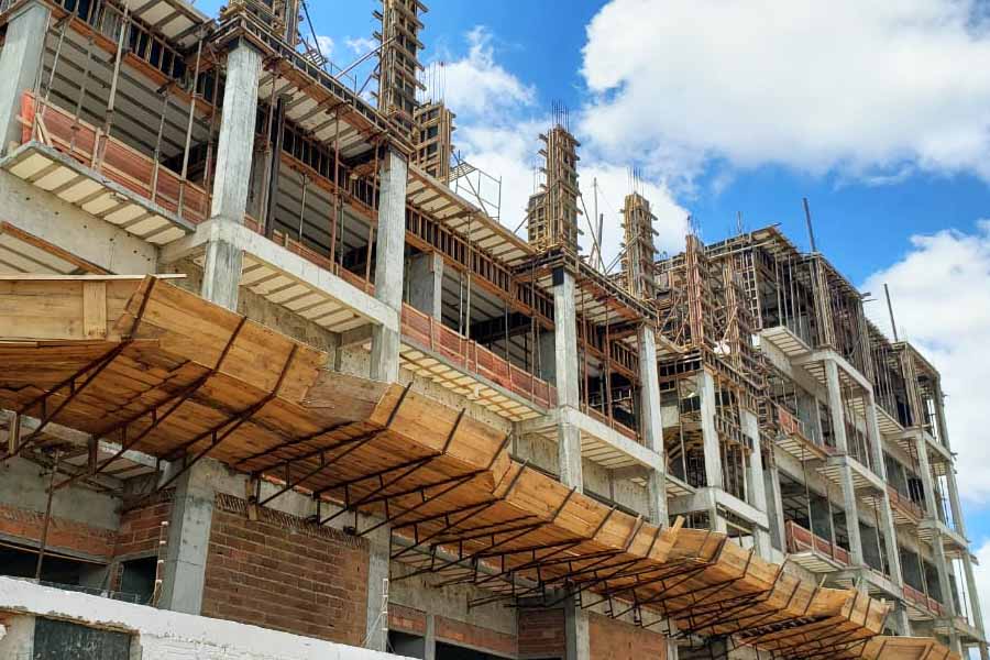 Segundo as informações, a estrutura do prédio, de 5 andares, já está concluída, e as próximas etapas demandam menos tempo para a conclusão.