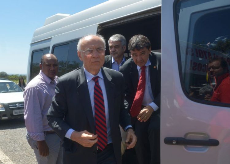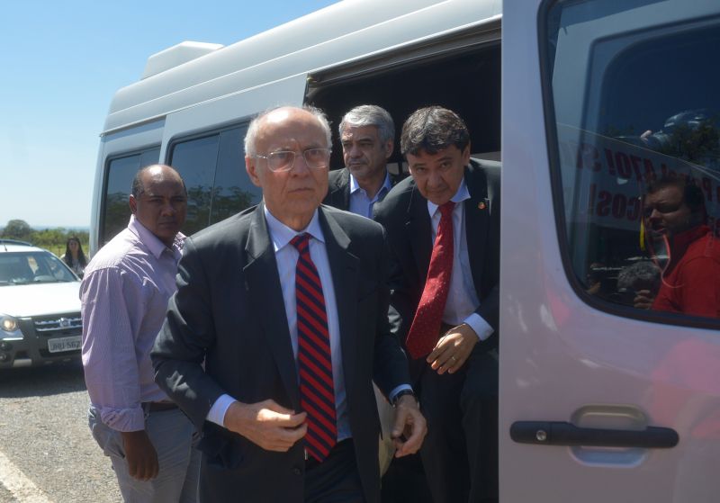 Brasília – Os senadores, Eduardo Suplicy, Humberto Costa e Wellington Dias, visitaram os condenados no processo do mensalão: o ex-ministro da Casa Civil, José Dirceu, o deputado José Genoíno, o ex-tesoureiro do PT Delúbio Soares e o ex-deputado Romeu Queiroz, todos cumprindo pena em regime semiaberto no Complexo da Papuda. (Agência Brasil)