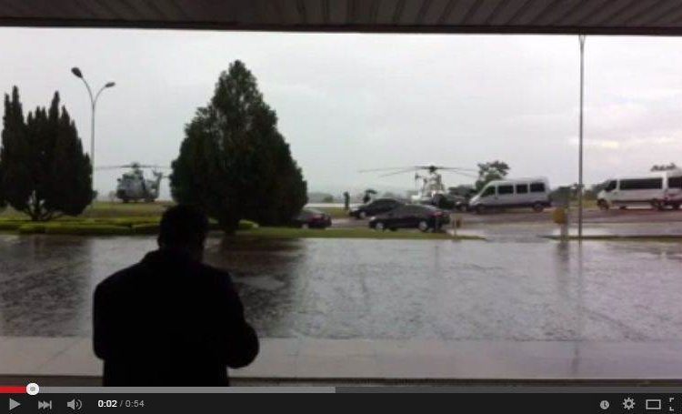 Dilma Rousseff chegou pro volta das 15h30 dessa quinta-feira (19) ao aeroporto Santa Genoveva e, de lá, foi de helicóptero até o Paço Municipal, que fica nas proximidades do estádio Serra Dourada.