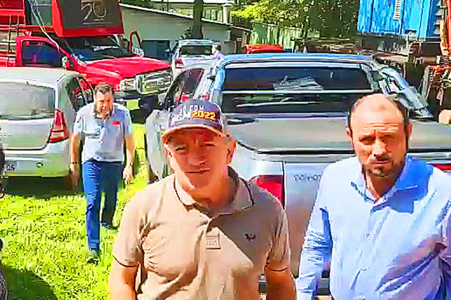 O vice-prefeito de Aparecida de Goiânia Vilmar Mariano (Podemos) chegou acompanhado do secretário Veter Martins (PSD) e do ex-vereador Mazinho do Madre Germana a evento de oposição ao governador Ronaldo Caiado (DEM) e de apoio a Gustavo Mendanha (sem partido) na manhã deste sábado (12).