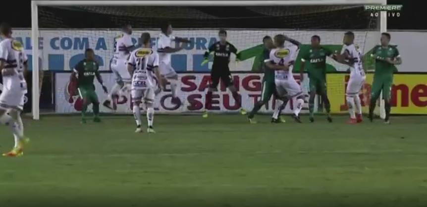 O gol do Anápolis foi após cobrança de falta do lado direito do campo, com belo desvio feito pelo zagueiro Igor | Foto: reprodução SportTV