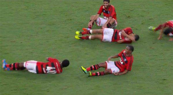 Os jogadores do Flamengo levaram em consideração a declaração do atacante e, ao final do jogo desta quarta, deitaram e rolaram no gramado do Maracanã em clara provocação ao artilheiro.