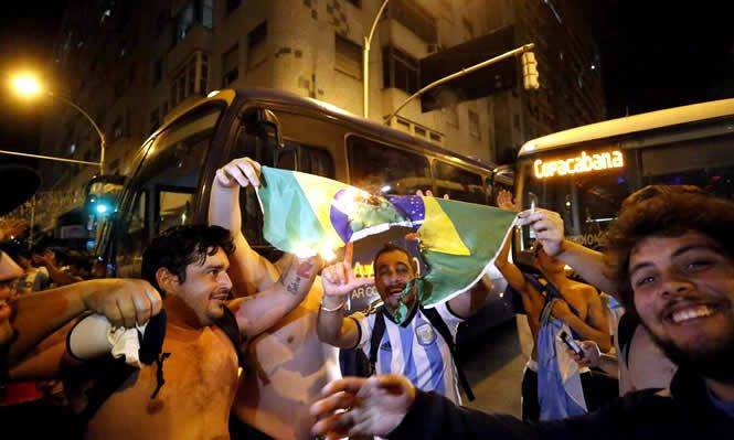 Não sabem perder. Apesar de brincar muito com a derrota vexatória do Brasil para a Alemanha (7 a 1), os Argentinos não reagiram bem sobre o resultado da final do mundial. Indignados com a derrota por 1 a 0, os “hermanos” fizeram tumulto Copa Cabana, no Rio de Janeiro.