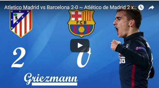 O Atlético de Madrid derrotou o Barcelona por 2 a 0 no Estádio Vicente Calderón, pelo jogo de volta das quartas de final, e eliminou o time de Messi, Neymar, Suarez e companhia.