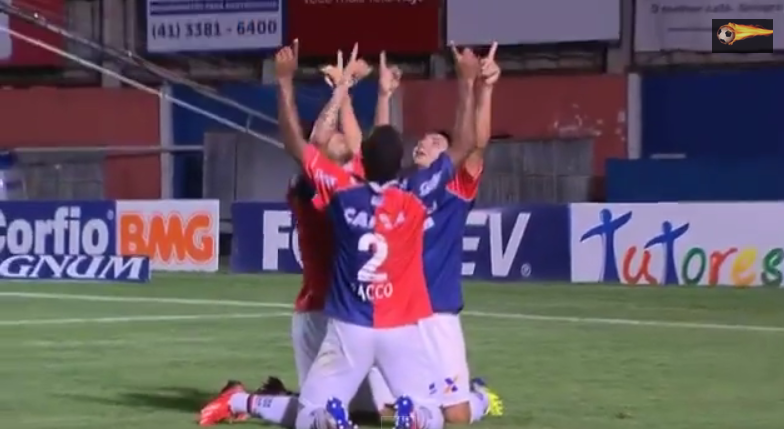 Jogadores do Paraná comemoram primeiro gol do jogo
