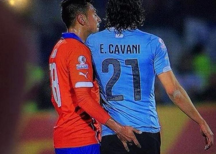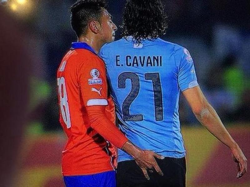Mas, vendo a cena por um ângulo diferente em vídeo reproduzido da internet, é possível observar uma atitude “suspeita” do zagueiro Gonzalo Jara. Na tentativa (bem sucedida, diga-se) de provocar o adversário, Jara soltou a mão boba no traseiro de Cavani, que reagiu com um tapa no rosto do zagueiro abusado.