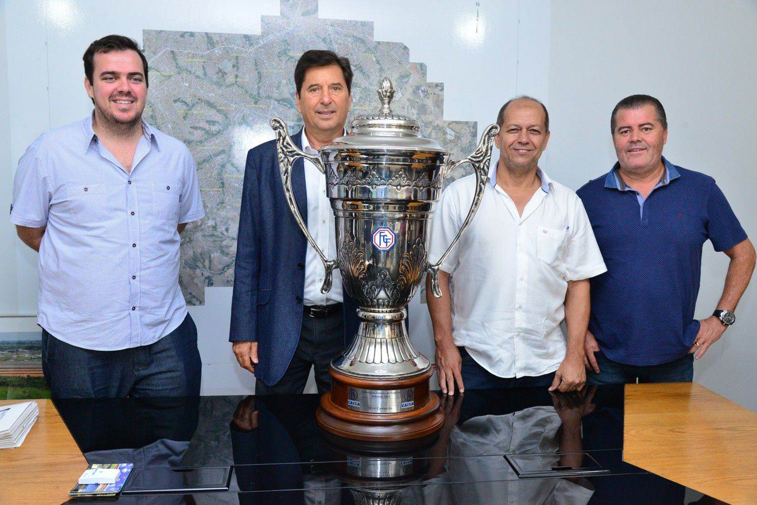 Taça de vice-campeão é levado ao prefeito de Aparecida / Foto: Secom