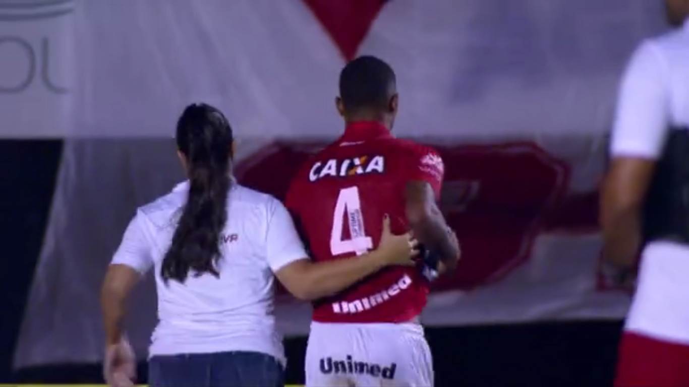 Zagueiro Brunão é consolado ao sair de campo depois de falha determinante para o resultado da partida | Foto: Reprodução