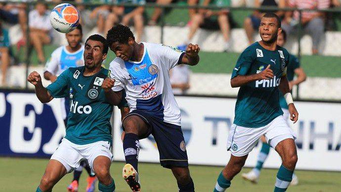 Meia Araújo, do Goiás, disputa a bola (Foto: Wildes Barbosa)