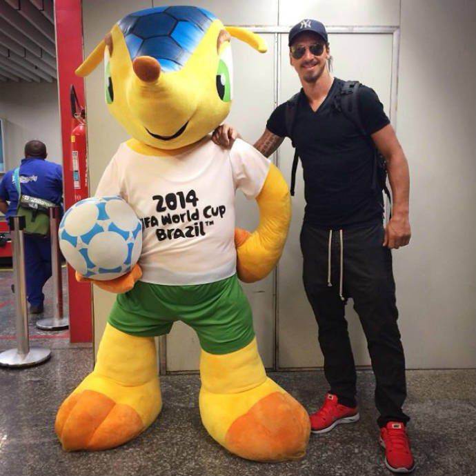 Após uma campanha nas redes sociais, promovida por brasileiros que clamavam pela presença de Ibra, a vinda do jogador permanecia no suspense. Ao chegar no Rio, posou ao lado do mascote da Copa, Fuleco, para seu perfil no Instagram.