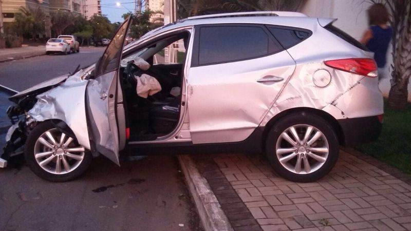 Imagens enviadas por leitores mostram que o veículo de Patrick, um Hyundai IX35, ficou muito estragado e seu air-bag foi acionado, indo parar na calçada.