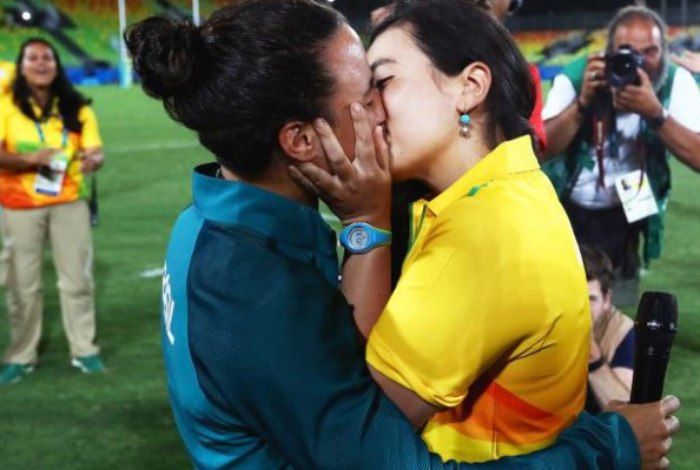 A atleta de 25 anos conta que conheceu a noiva no rugby e fala com orgulho do pedido que rodou o mundo, registrado em vídeo e fotos. “Foi muito emocionante. Eu não estava esperando e achava que ia só fazer uma entrevista. Foi muito importante poder pronunciar o amor e demonstrar publicamente”.