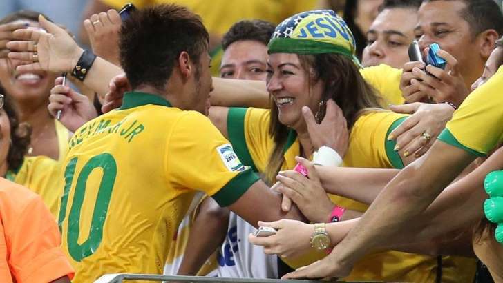 Neymar vai ao encontra da mãe durante jogo do Brasil