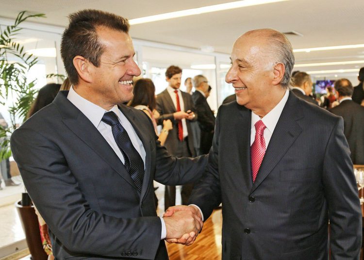 Dunga cumprimenta o novo presidente da CBF, Marco Polo / Foto: Ricardo Stuckert