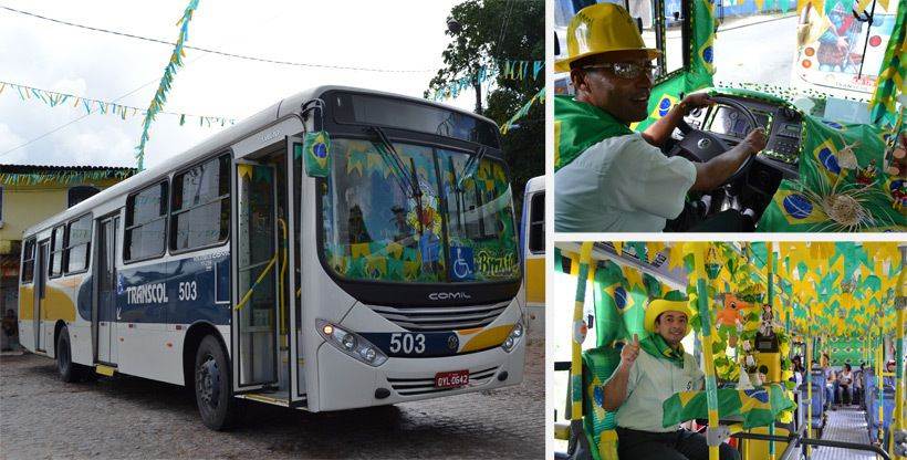 Não tem desânimo ou mau humor que resistam à animação do motorista e seu cobrador, Eduardo Martins. Juntos, eles transformaram o veículo em um verdadeiro arraial dedicado à Seleção. Bandeirinhas e balões verdes e amarelos, fogueira fictícia, chapéu de palha, boneca matuta e muito forró são o antídoto certo para o trânsito da capital pernambucana.