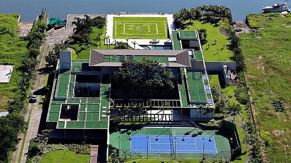 Localizada no condomínio Portobello – em um terreno de 10 mil m² -, a propriedade possui seis suítes, heliponto, quadra de tênis, espaço gourmet e adega subterrânea climatizada com capacidade para três mil garrafas.