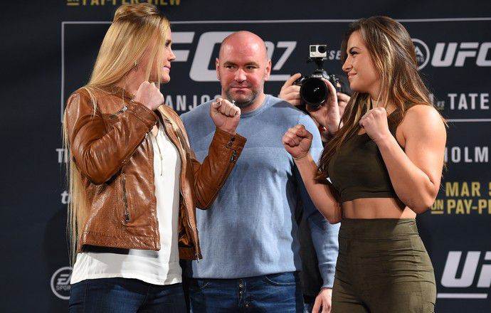 Tate, a “Cupcake”, foi finalizada pela ex-campeã Ronda Rousey, que foi desbancada por Holm. Para a desafiante, não enfrentar Ronda é positivo tanto dentro, quanto fora do octógono. Segundo ela, enfrentar Holly é motivo de comemoração, uma vez que nutre um sentimento de respeito e admiração pela campeã.