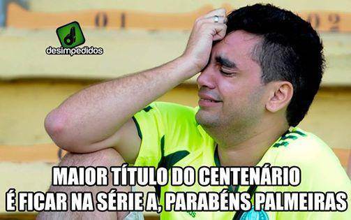 O Palmeiras empatou com o Atlético-PR na última rodada do Brasileirão e só escapou do rebaixamento porque o Santos venceu o Vitória. Apesar de ter permanecido na elite do futebol brasileiro, o Alviverde paulista virou piada na internet.