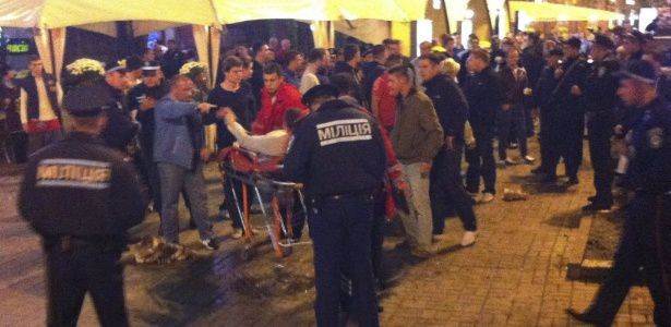 Três torcedores ingleses foram hospitalizados na noite do último domingo após serem esfaqueados por ucranianos nas ruas de Kiev, capital da Ucrânia, dois dias antes do duelo entre os países pelas Eliminatórias europeias da Copa do Mundo de 2014.