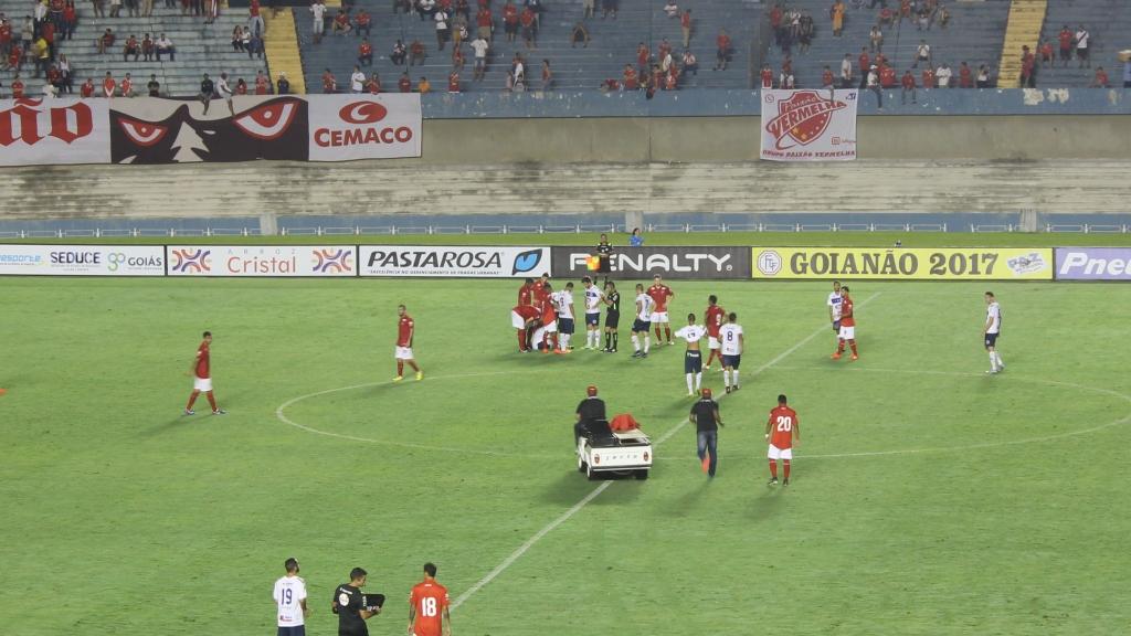 O jogo foi bastante equilibrado na etapa inicial. Goianésia fez boas jogadas com o atacante Michael. Foi o jogador que mais deu trabalho para a defesa colorada. Nonato, bem marcado, pouco colaborou com a equipe visitante. Os atacantes colorados Wallysson e Moisés tiveram muita dificuldade para jogar. Bem marcados, levaram pouco perigo ao gol de Luan.