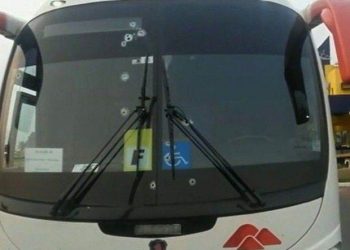 Ônibus que transportava fieie é atingido por 17 dsiapros |Foto: Reprodução/TV Anhanguera Um ônibus, com cerca de 45 passageiros, foi ...