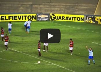 Zagueiro Ricardo derruba o atacante Wallyson na área! É PÊNALTI! Atlético (GO) e Vila Nova abriram o 1º turno do ...