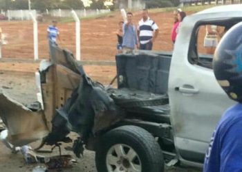 A carroceria, onde as vitimas estavam, ficou parcialmente destruído, demonstrando a proporção da explosão. O veículo passa por perícias para ...