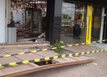 Duas agências bancárias foram assaltadas na madrugada desta terça (7). Na foto, a agência do Bradesco em Aloândia. | Foto: ...